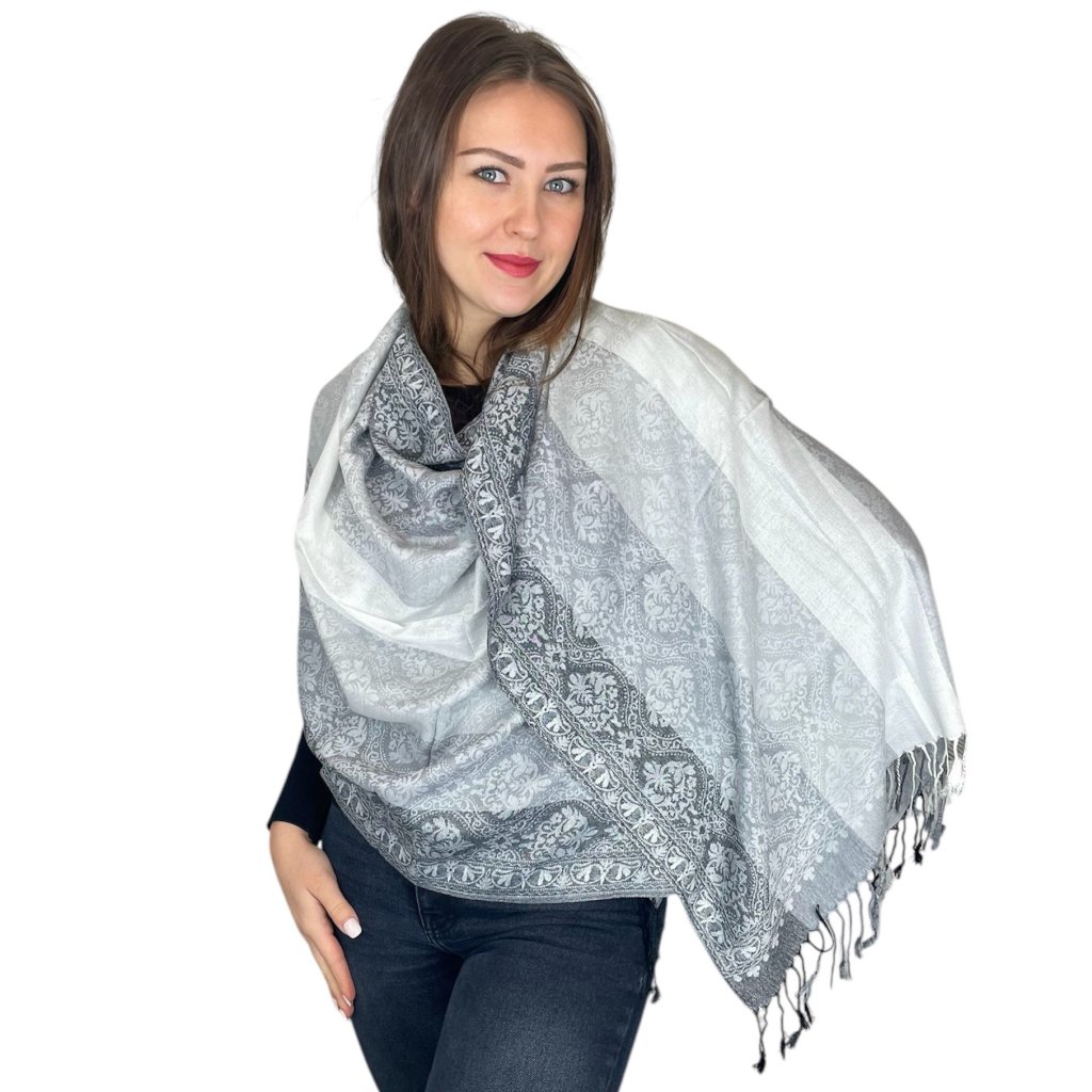 Šál Pašmína - Celestine - Světle šedá