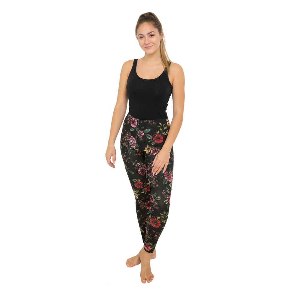 NOVINKA- Dámské dlouhé legíny černé květované-Sale