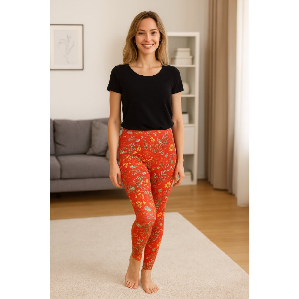 NOVINKA- Dámské dlouhé legíny červené s motýlkem a kvítím