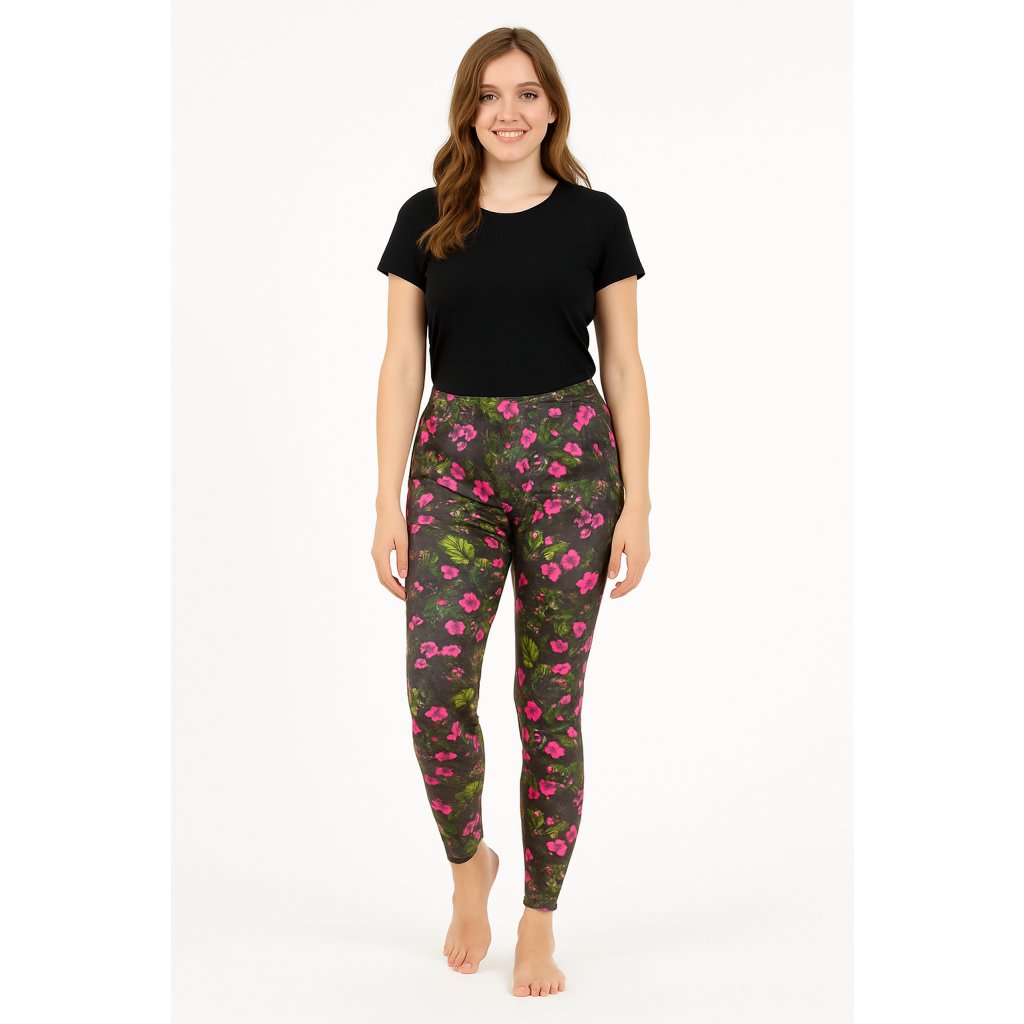NOVINKA- Dámské dlouhé legíny hnědé s motýlkem a kvítím