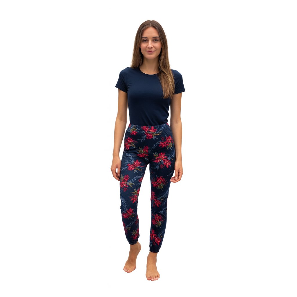 NOVINKA- Dámské dlouhé legíny s červenými a modrými kvítky