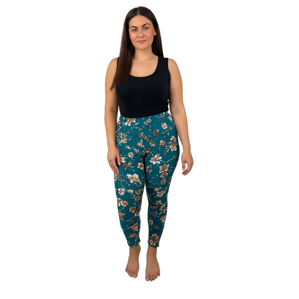NOVINKA- Dámské dlouhé legíny tyrkysové s květy