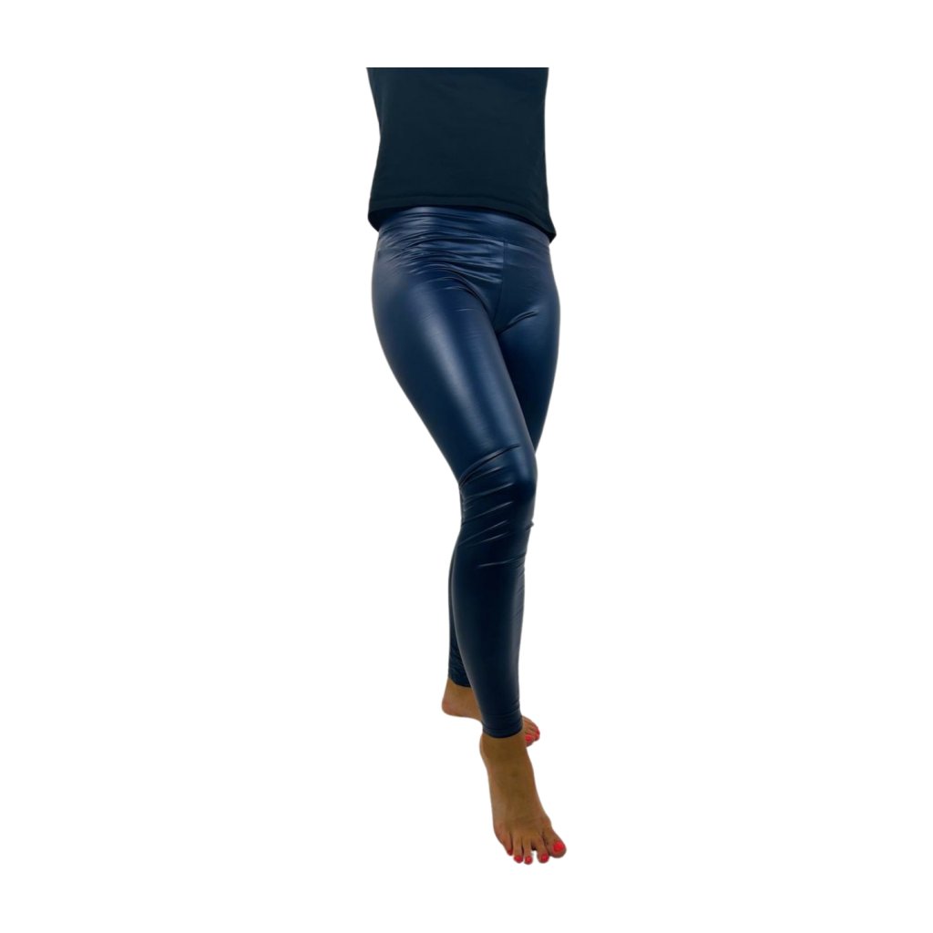 NOVINKA- Dámské dlouhé lesklé legíny - tmavě modré