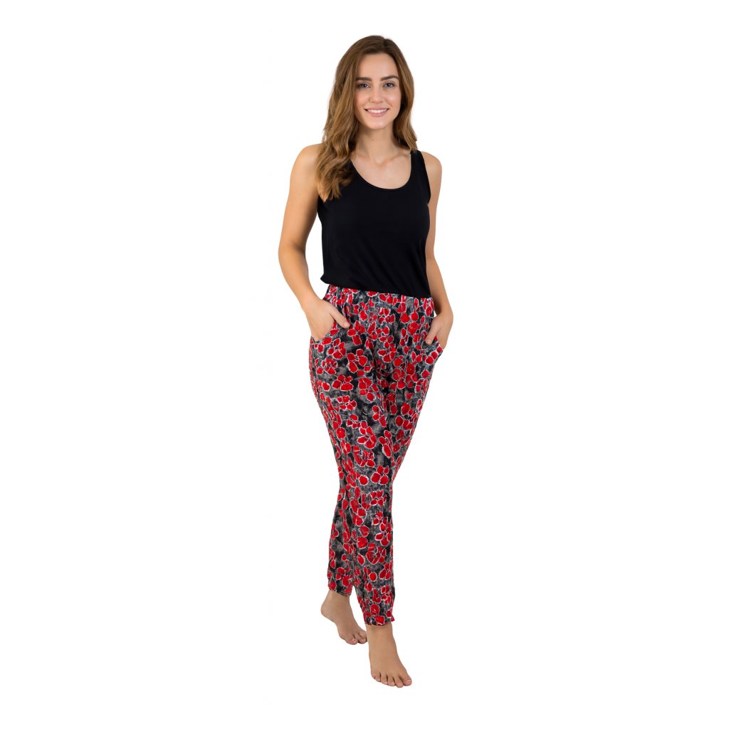 NOVINKA- Dámské kalhoty typ legíny černé s červenými květy