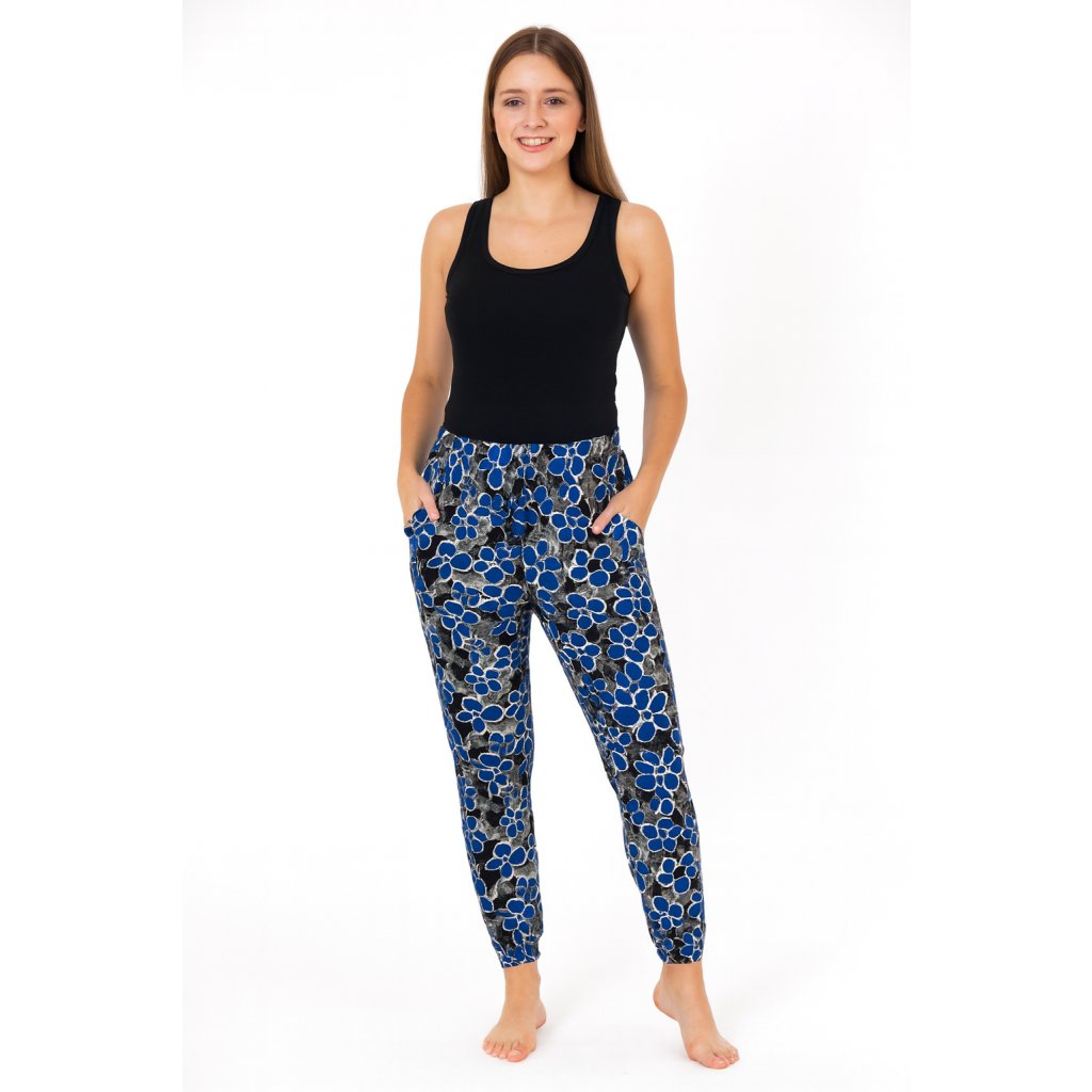 NOVINKA- Dámské kalhoty typ legíny černé s modrými květy-Sale
