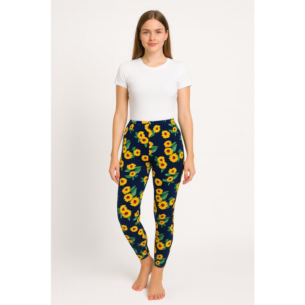 NOVINKA- Dámské legíny modré se žlutými květy