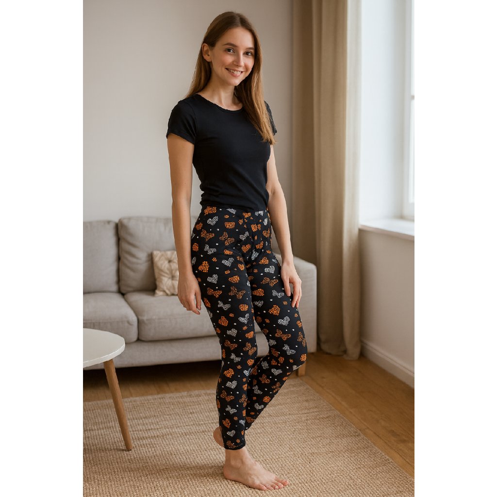 NOVINKA- Dámské legíny s oranžovými srdíčky