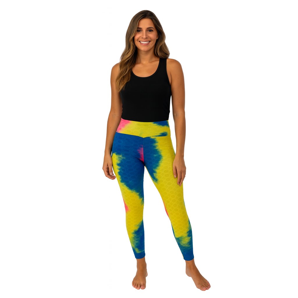 NOVINKA- Jógové Legíny S Vysokým Pasem A Zdůrazňujícím Efektem, S Texturou Bublin - mix
