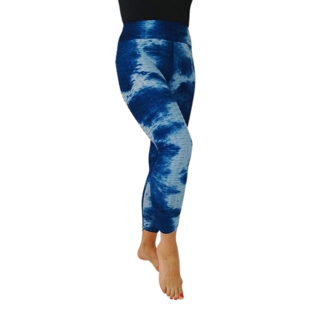 NOVINKA-Jógové Legíny S Vysokým Pasem A Zdůrazňujícím Efektem, S Texturou Bublin - modré