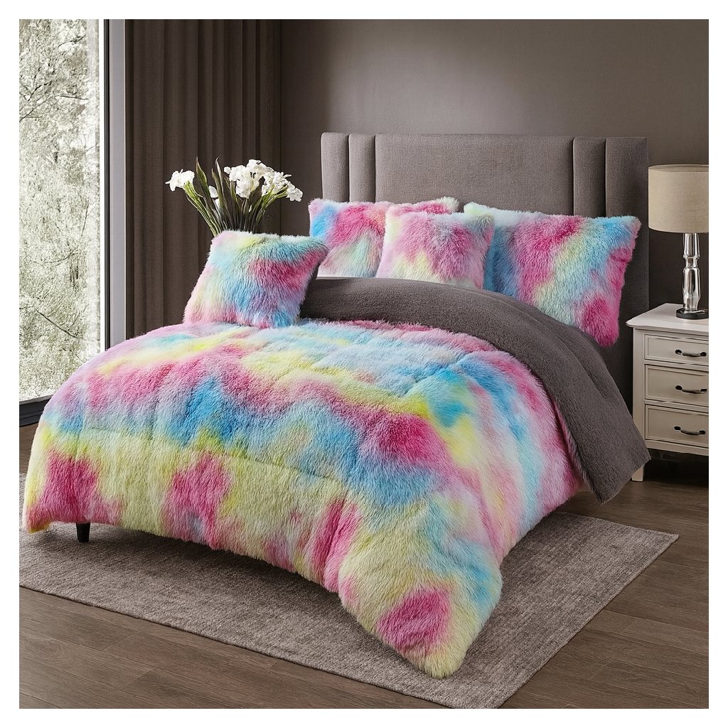 Komfortní Sada Přikrývek z Umělé Kožešiny s Duhovým Vzorem