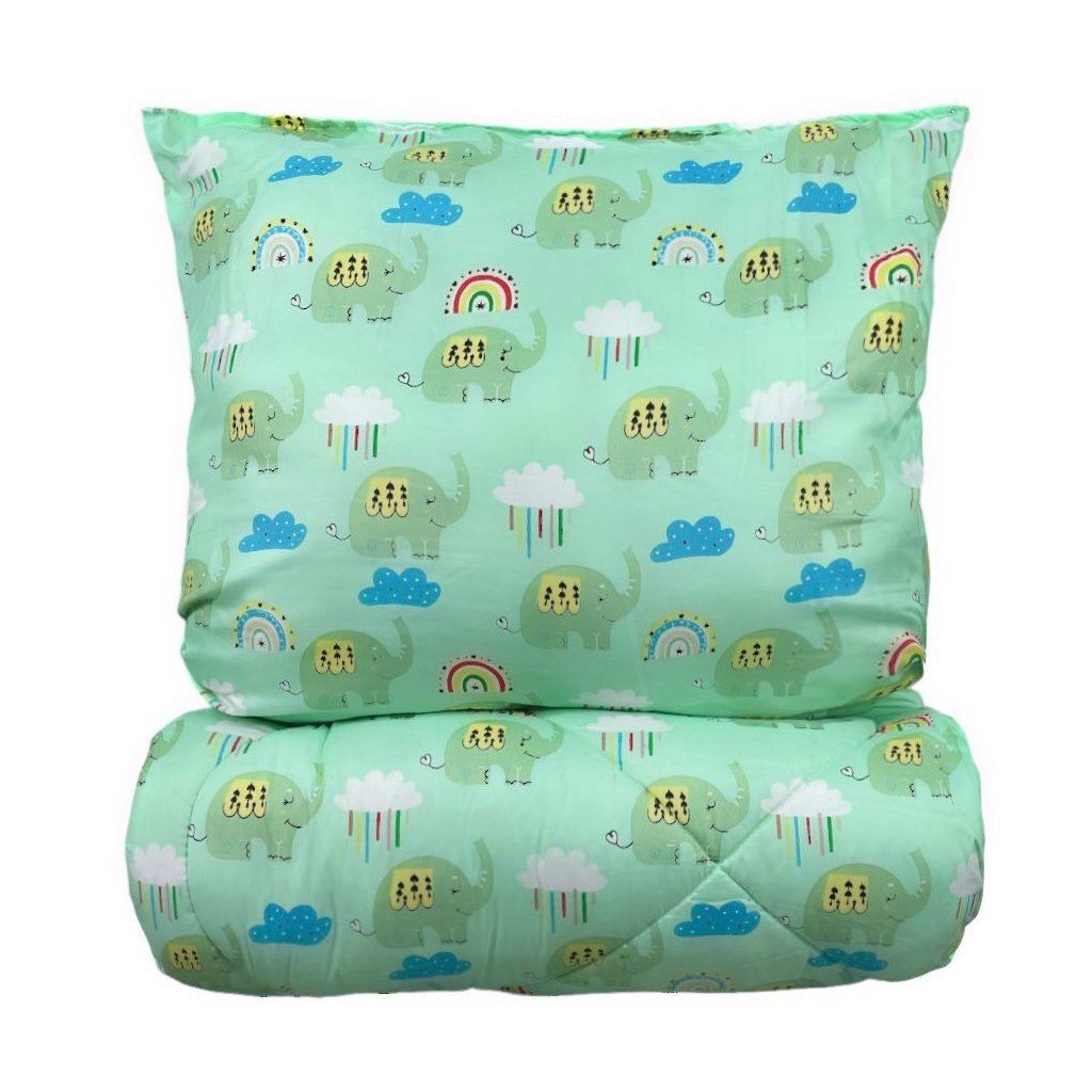 Výprodej-Přikrývka a polštář -Sloni s duhou, zelené