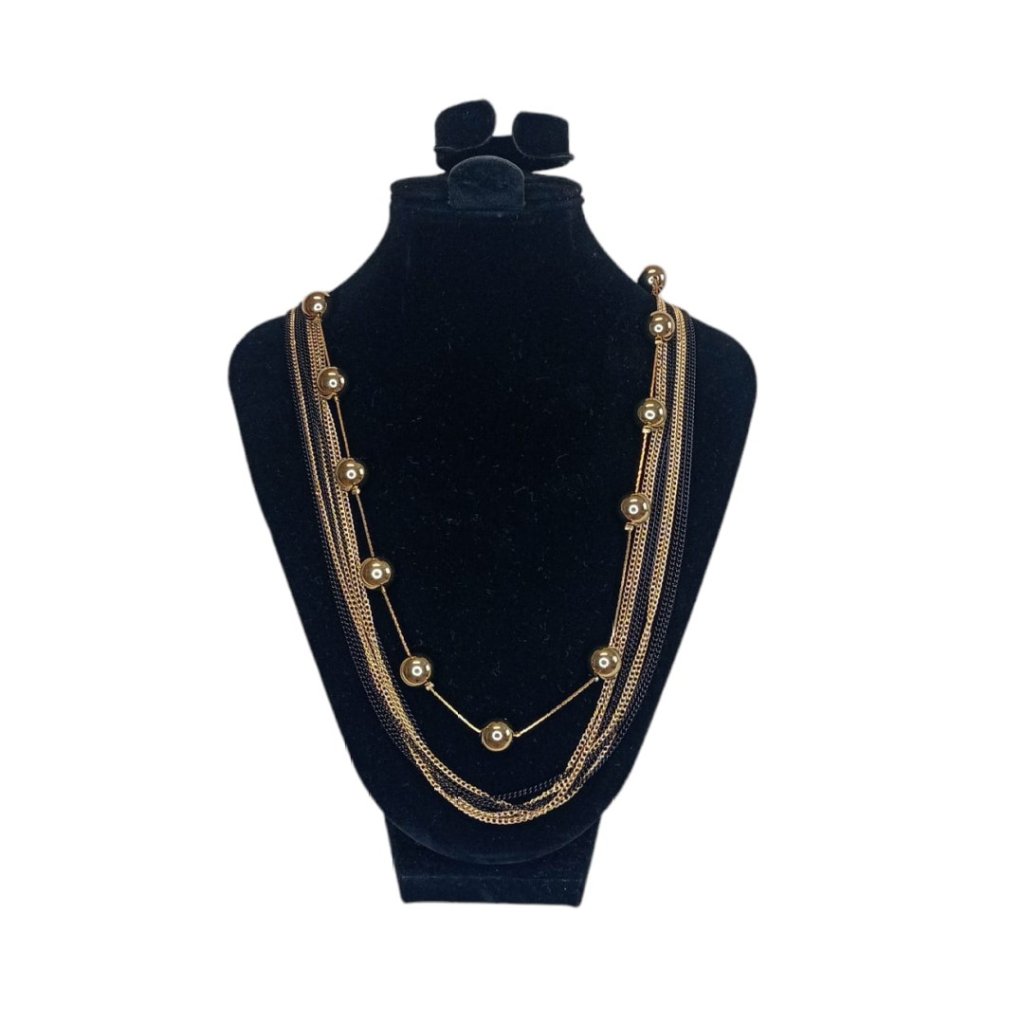 BAZAR-Metal Náhrdelník - Černé a zlaté řetízky se zlatými kuličkami