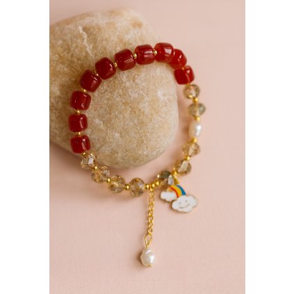 Krásný náramek v červené barvě je skvělým doplňkem ke každému outfitu. Korálky jsou navlečené na gumičce. Náramek je vhodným dárkem pro muže i ženy. Foto je ilustrační. Každý...