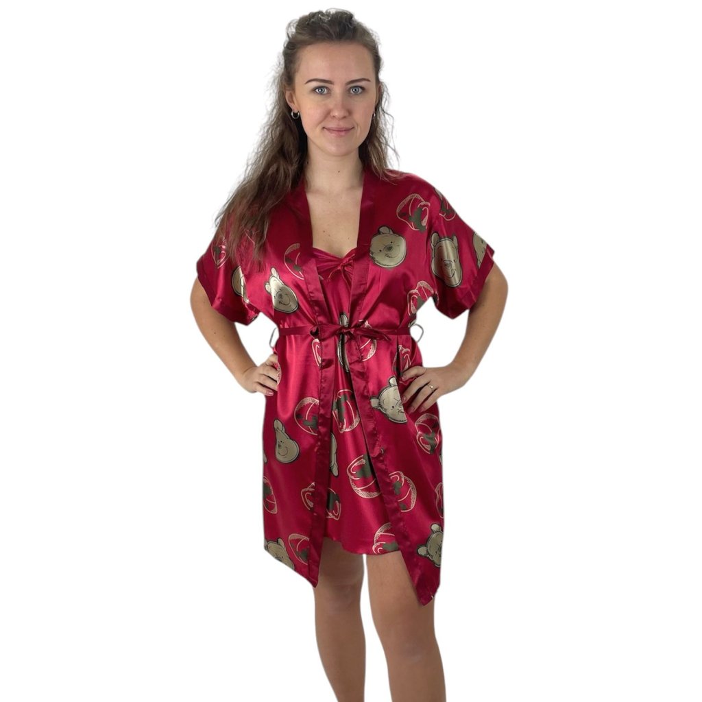 VÝPRODEJ - Saténová noční košilka se županem - Medvídek