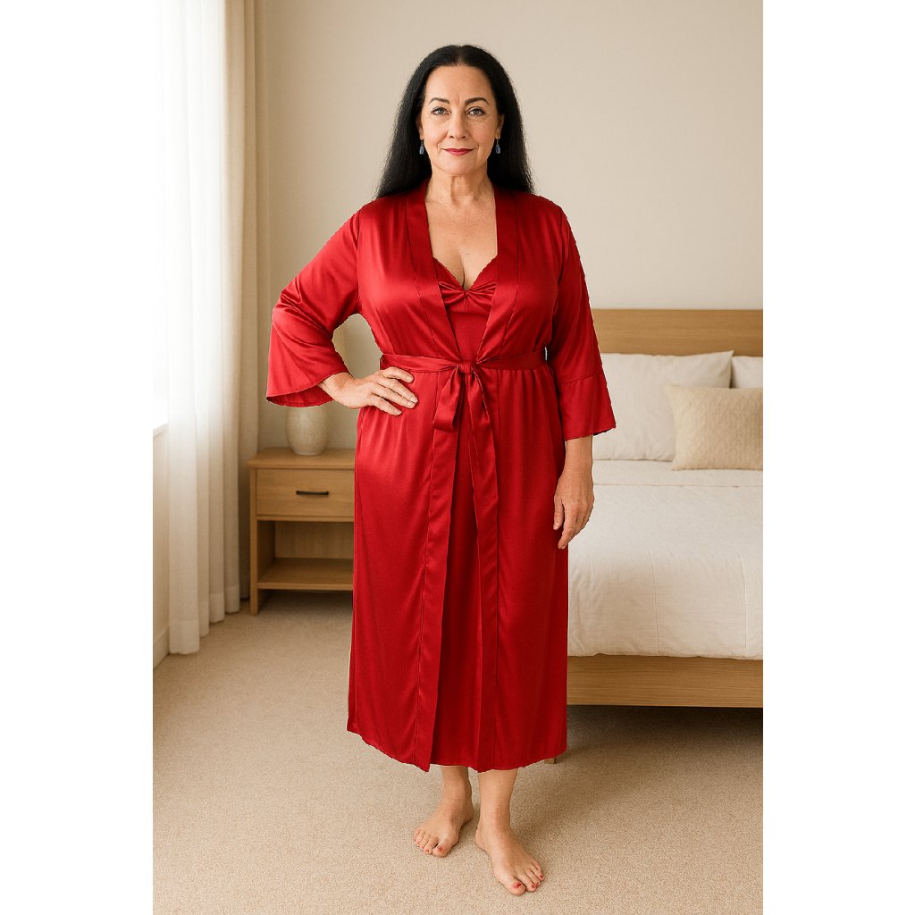 Saténová noční sada-košilka, župan - ČERVENÁ