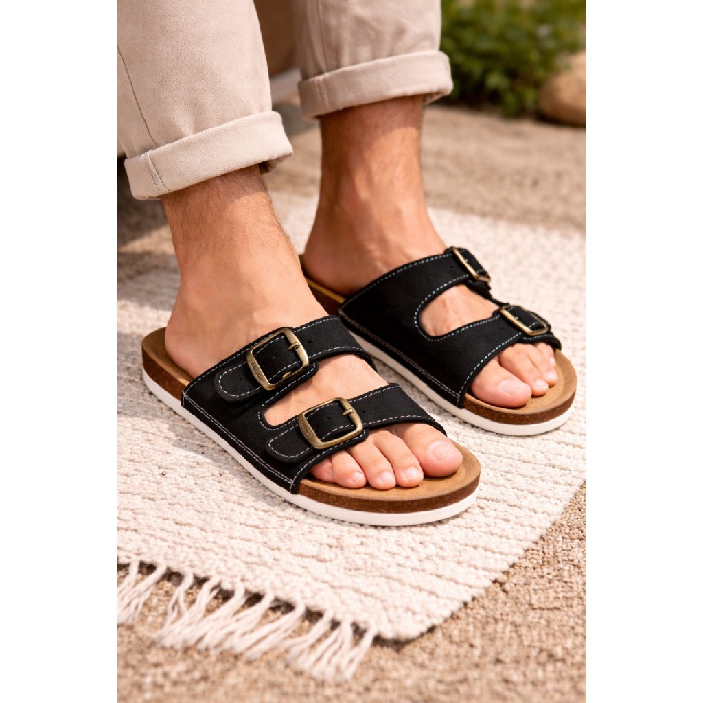 Klasické korkové pantofle, které se hodí do práce, školy i na doma. Díky kvalitní stélce a podrážce tlumí veškeré dopady při chůzi. Nastavit si je můžete díky nastavitelnými pásky s kovovými přezkami. Pohodlné a odolné na nošení.