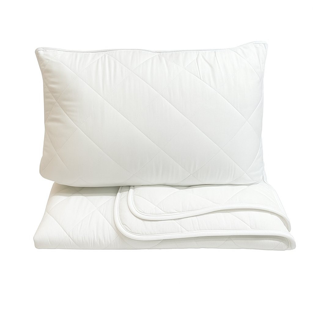 BF-SET Prošívaná přikrývka 140x200 cm + polštář 70x90 cm bílá s bílým lemováním