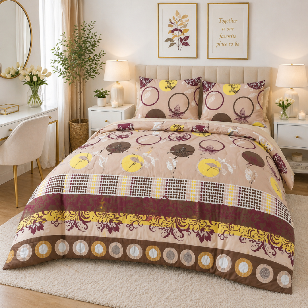 SET Přikrývka a polštář, béžová s kruhy