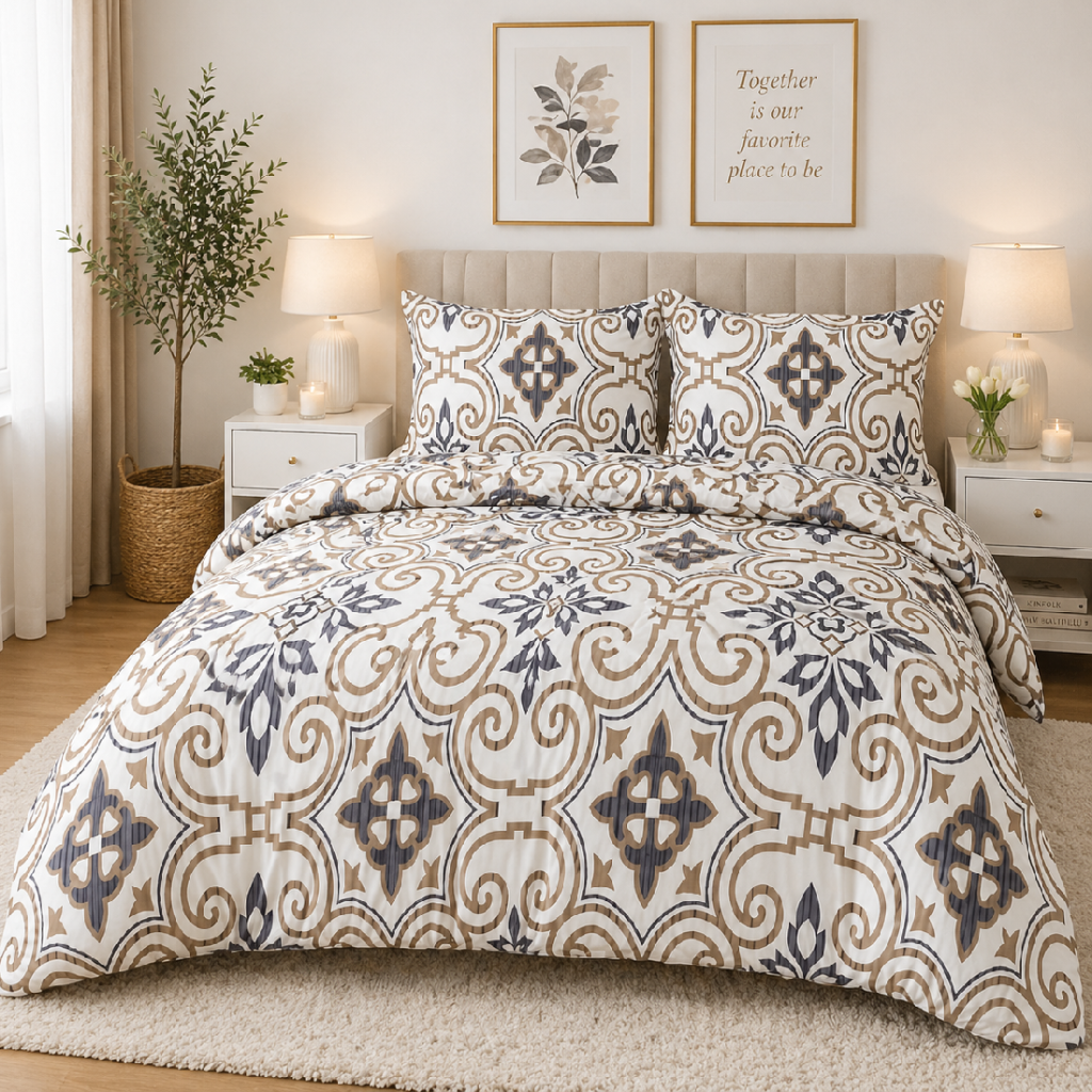 SET Přikrývka a polštář, šedozlatý ornament