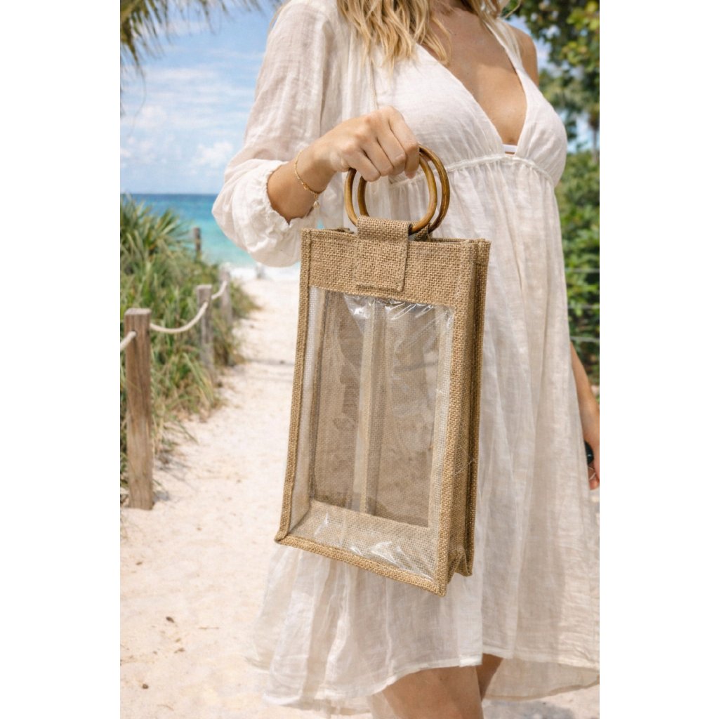 Přírodní jutová taška s průhledným okénkem