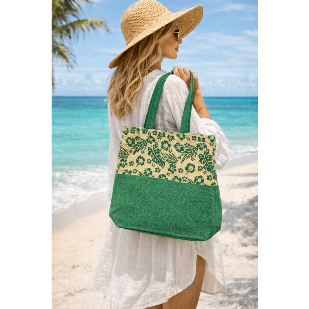 Přírodní jutová zelená taška s květy