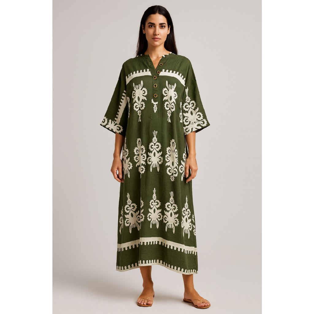 Maxi šaty - Bohemian Ornamental - khaki