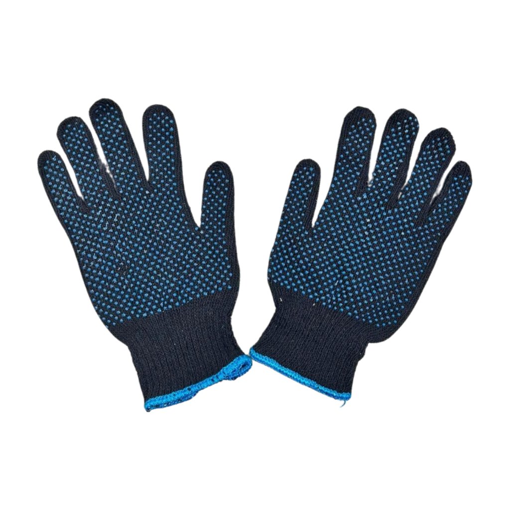 Pracovní rukavice šité z bavlny s protiskluzovými terčíky z PVC, velikost 7, modrá/modrá