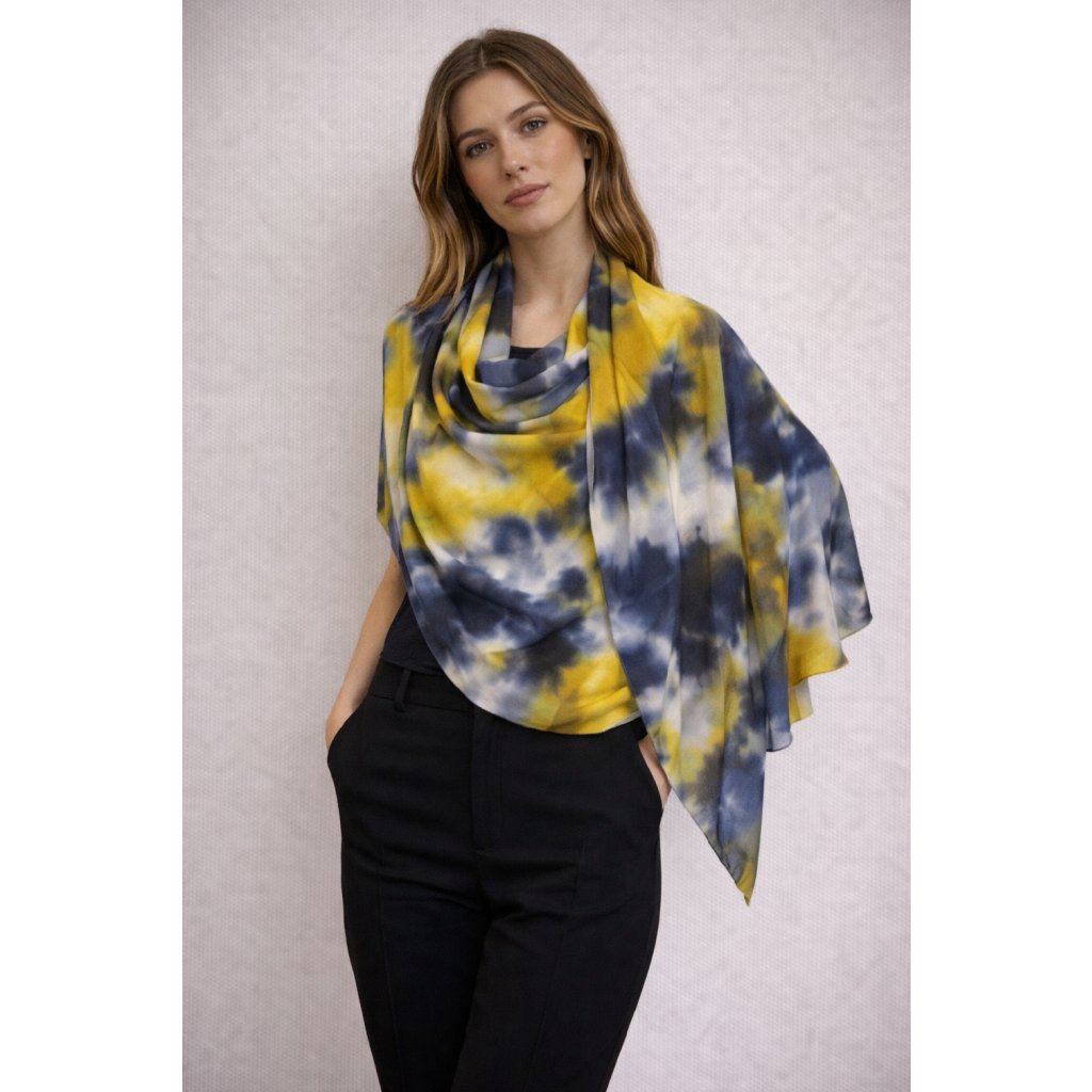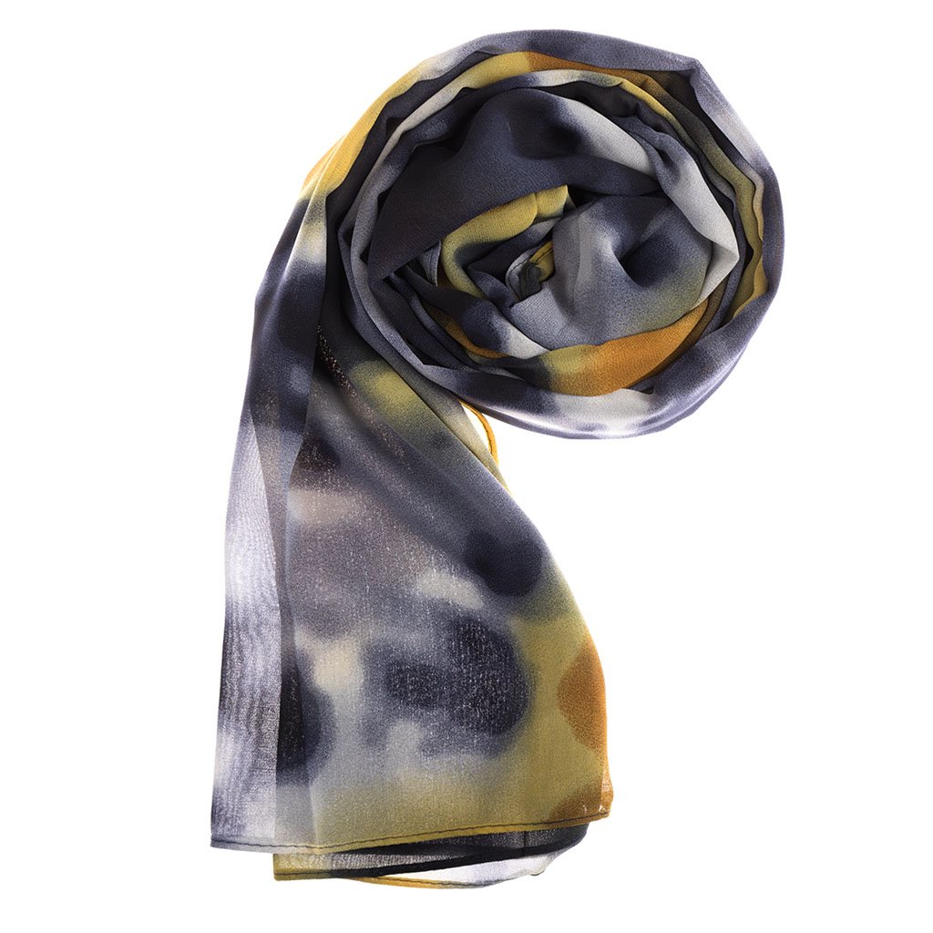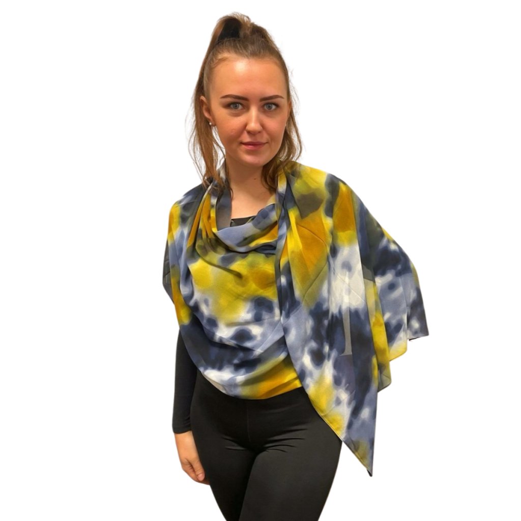 Dámský šátek 85 x 175 cm batika tmavě černo-žlutý