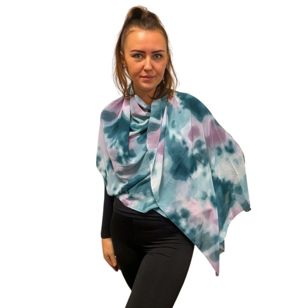 Dámský šátek 85 x 175 cm batika Tyrkysovo - hnědý