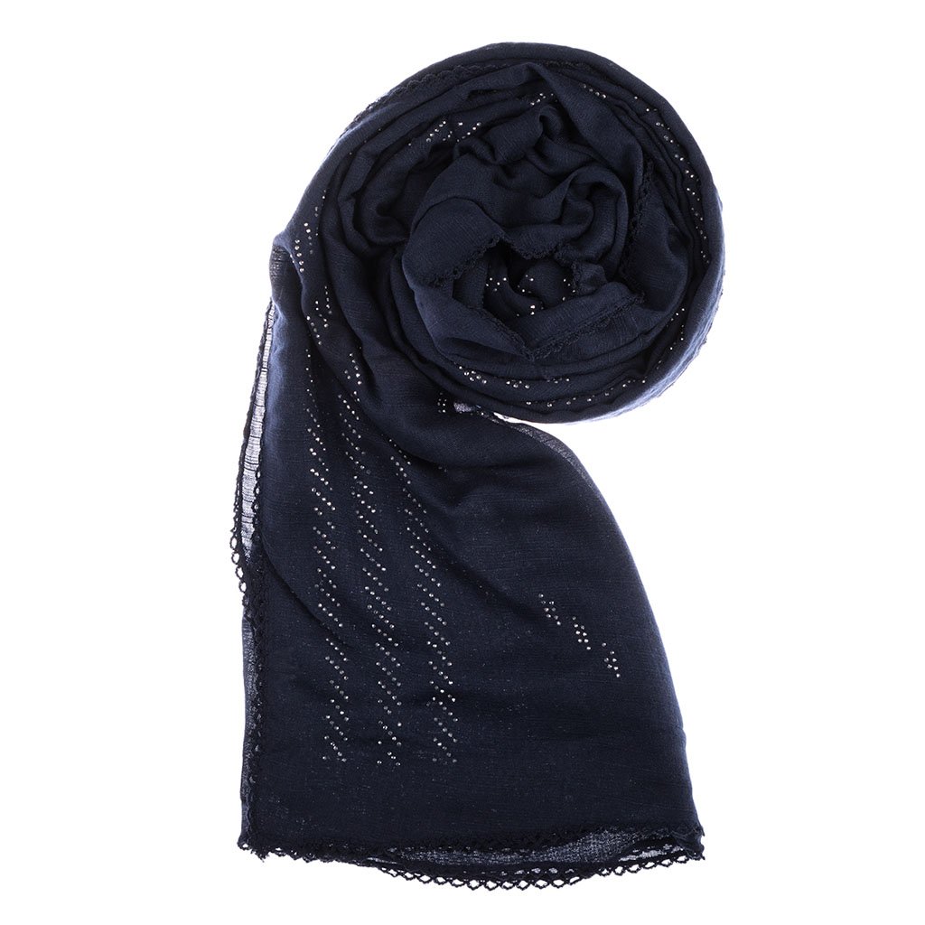 Dámský šátek 90 x 175 cm ozdobné proužky - tmavě modrý