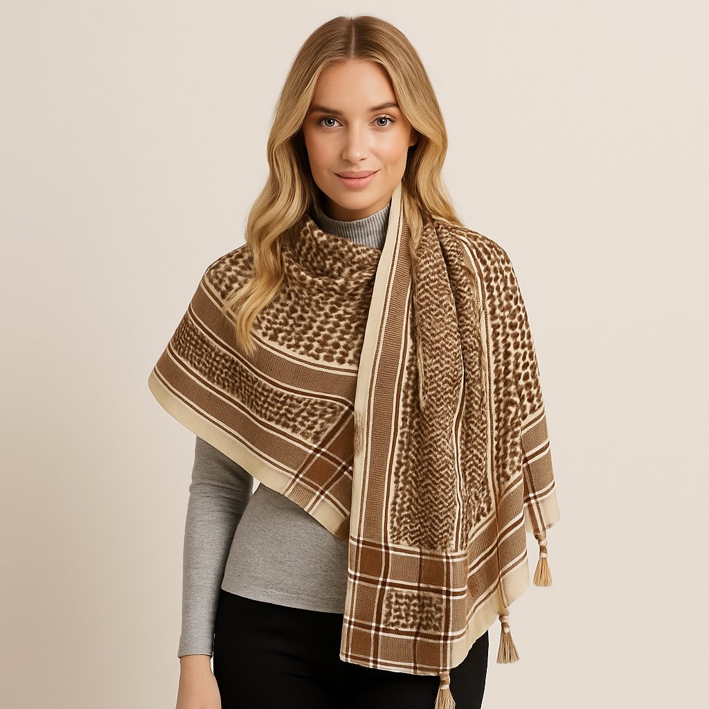 Dámský šátek 90 x 175 cm Střapce 23-11 - béžovohnědý