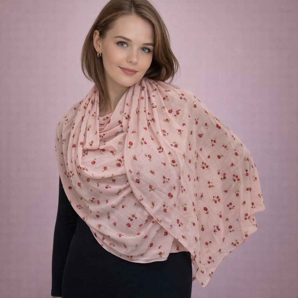 Dámský šátek 85 x 175 cm květinky -starorůžový