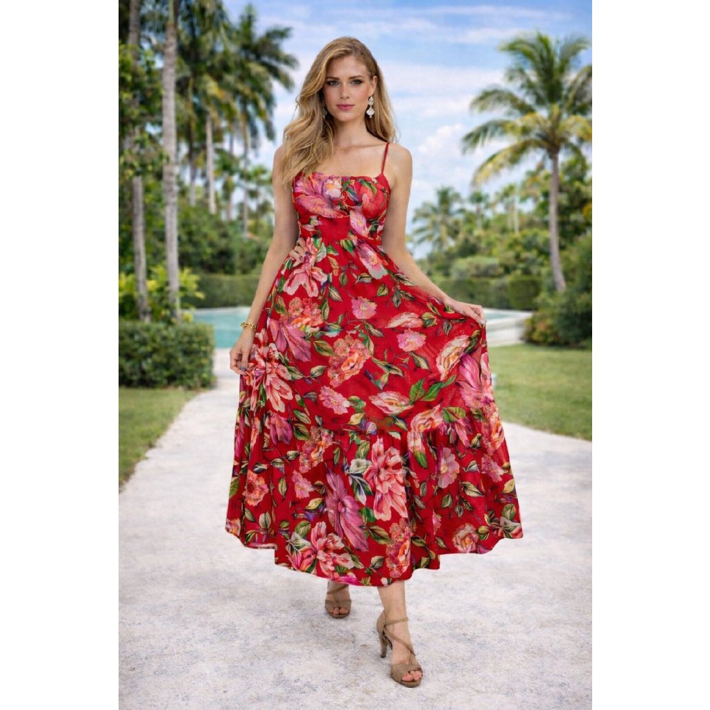 Letní šaty na ramínka s nabíranou sukní 2331069-2 - červené
