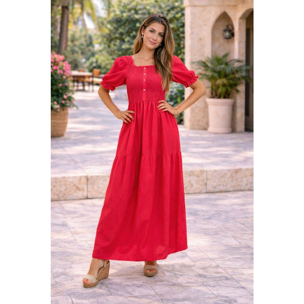 NOVINKA-Letní šaty s žabičkováním a rukávky - růžové