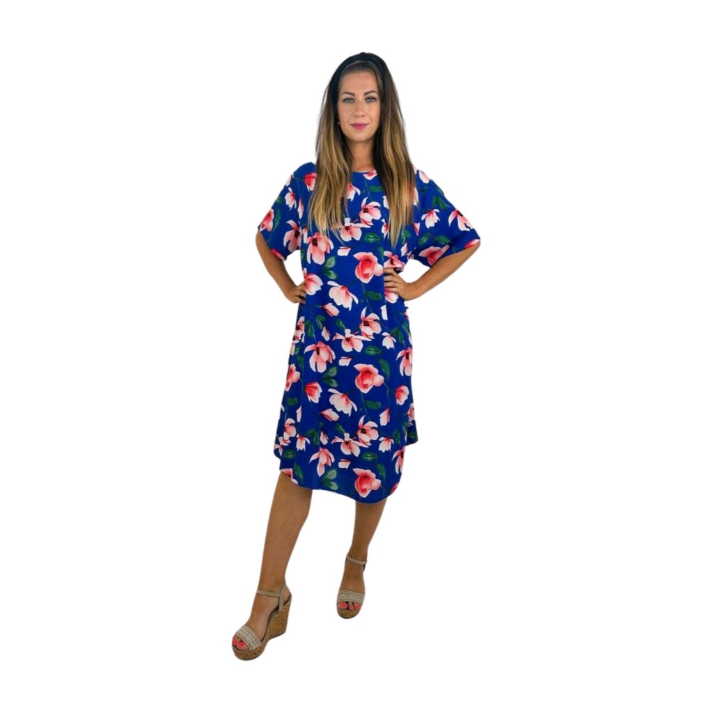 NOVINKA - Šaty s rukávky Růžičky - modré