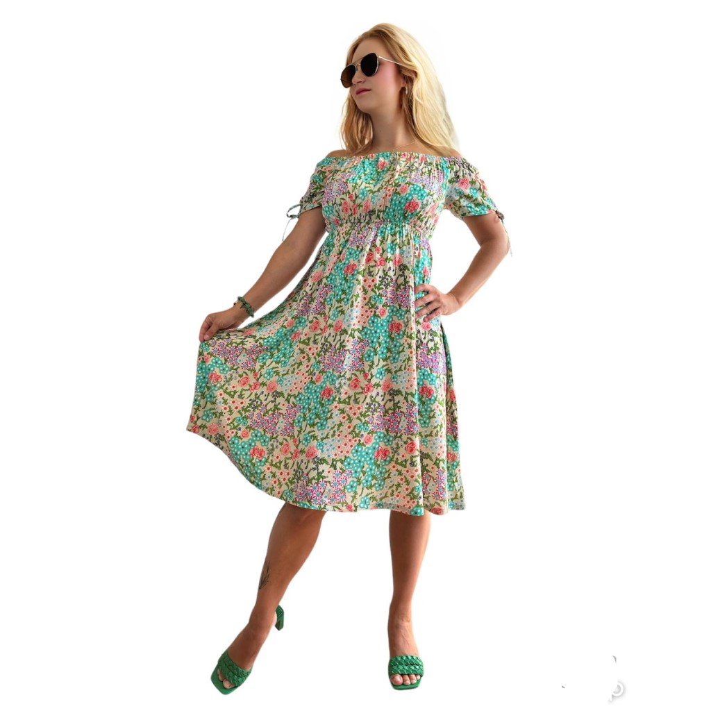 Letní šaty s Carmen výstřihem 3155 - drobná kvítka
