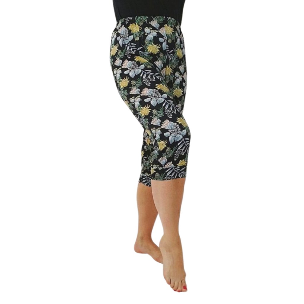 NOVINKA-Dámské legíny krátké - černé s kvítím