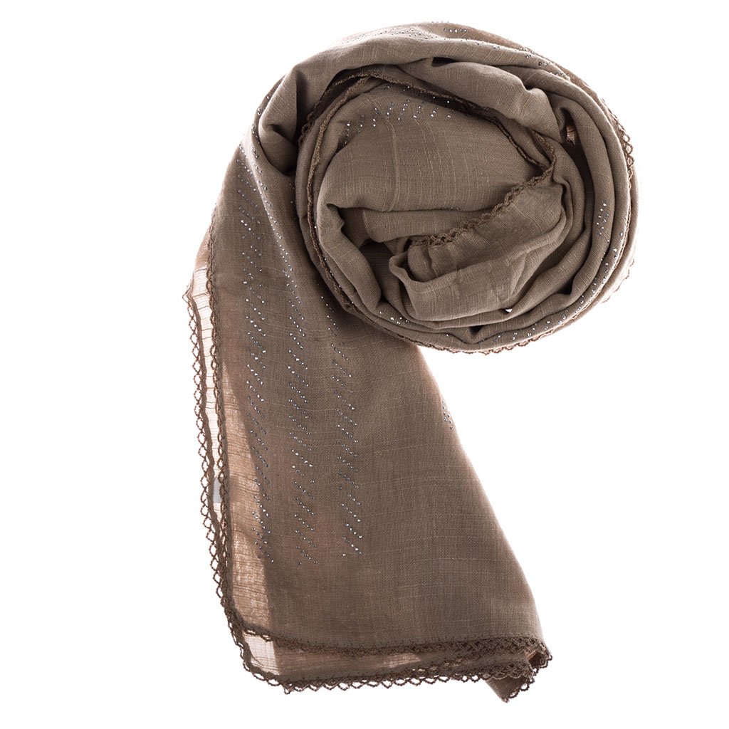 Dámský šátek 90 x 175 cm ozdobné proužky - béžový