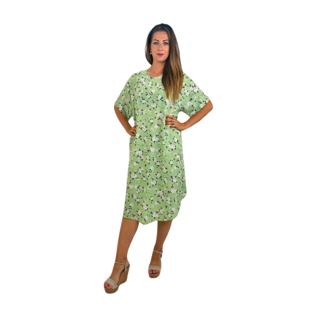 NOVINKA - Šaty s rukávmi drobná kvietka - svetlo zelené