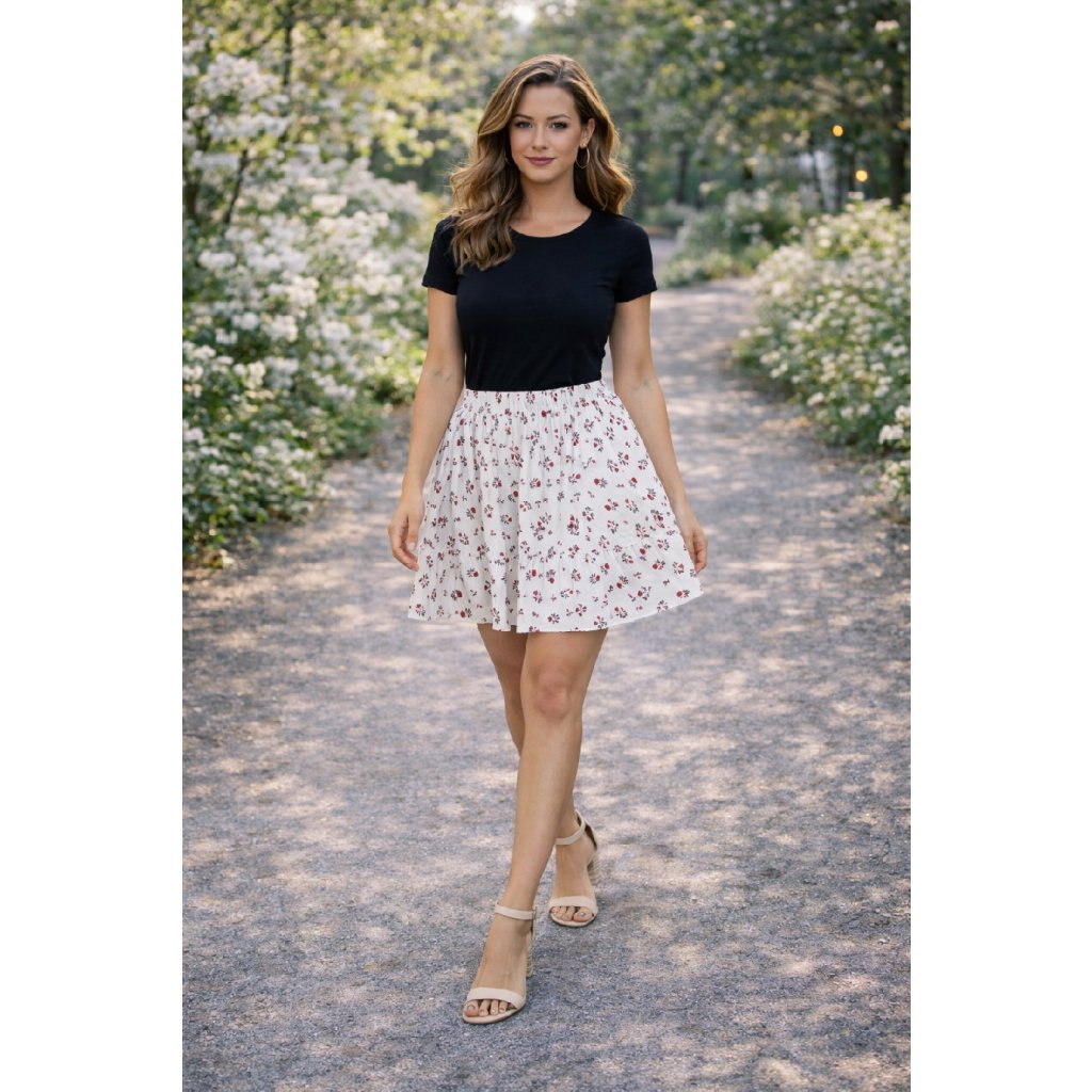 Minisukňa biela s červenými kvietkami vzor vz.č.12