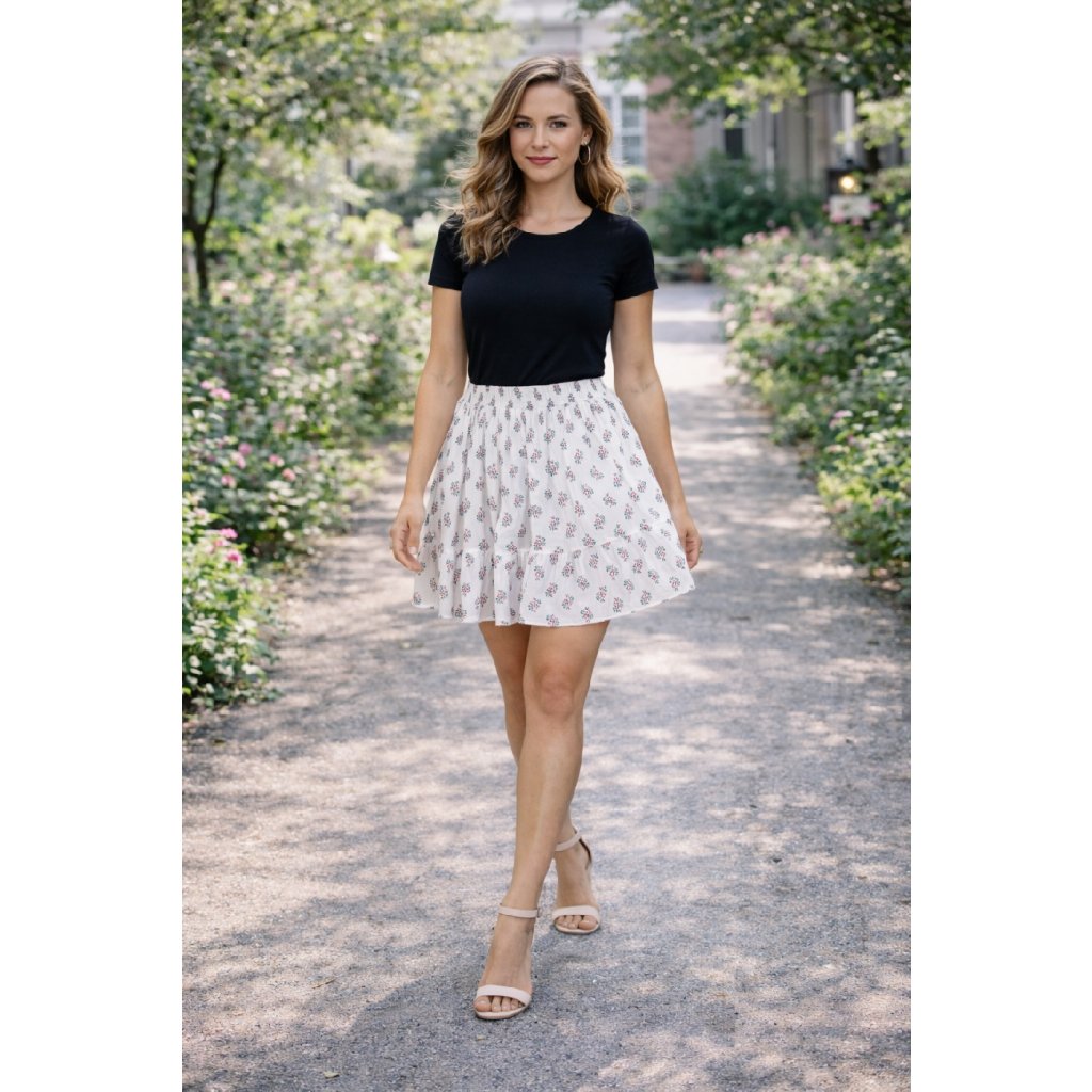 Minisukňa biela s kvietkami vzor vz.č.11