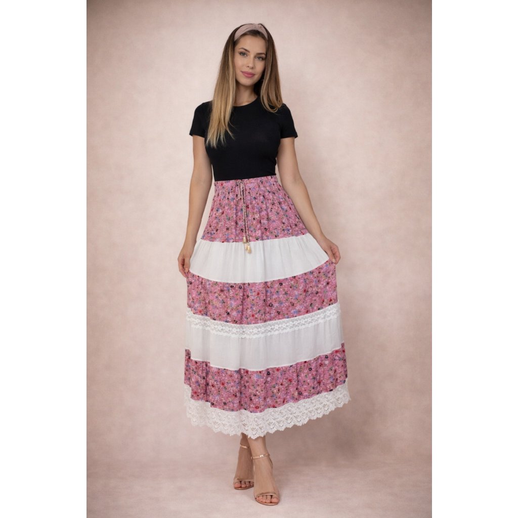 Sukne a šaty s ozdobnou čipkou - ružové s kvetinkami