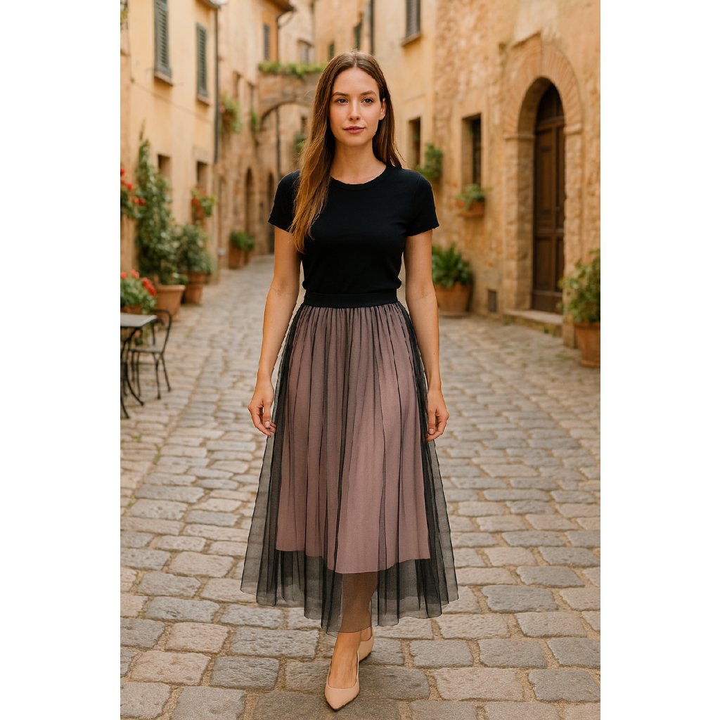 Sukňa tylová prúžky - ružová
