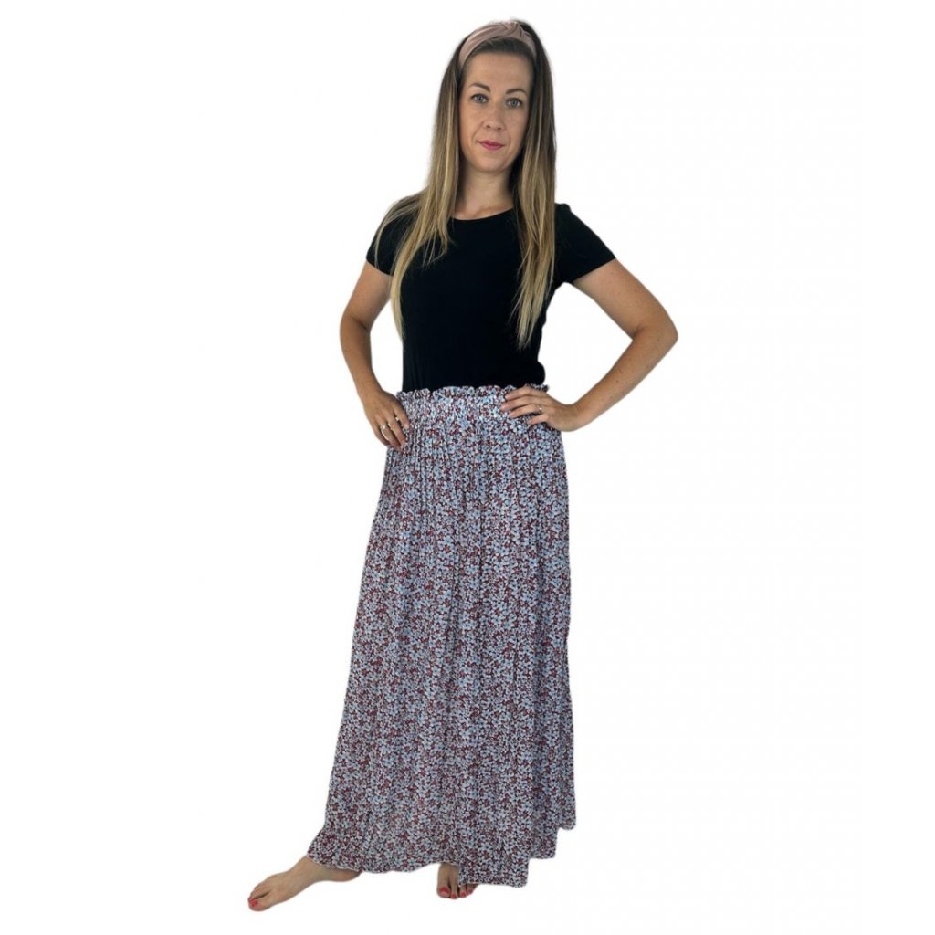 Dlouhá sukně s jemnými květy- modré