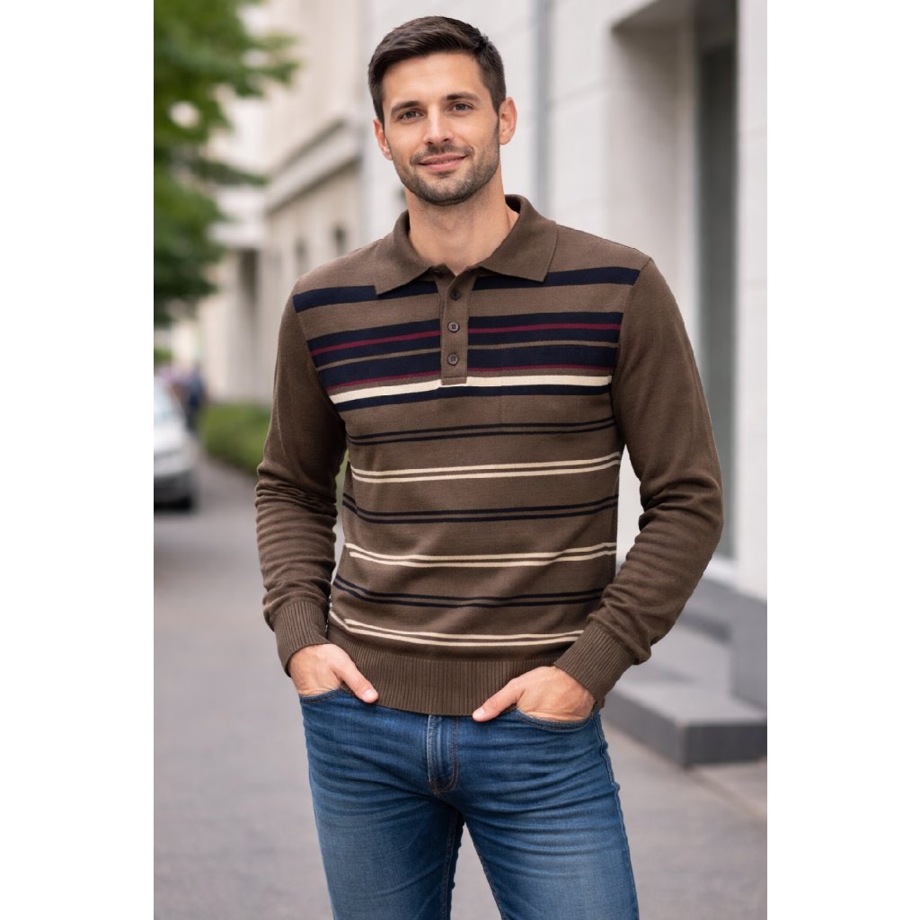 Klasický pánský svetr z jemného úpletu s límečkem